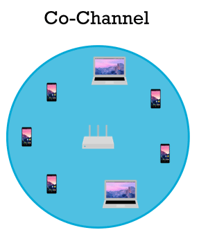 Já a interferência de canal comum (co-canal) se assemelha a uma sala de aula. Sempre tem um aluno que fala um pouco mais devagar na hora de fazer uma pergunta para o professor. Todos esperam ele acabar de falar para poder se dirigir ao professor, ou até mesmo um ao outro (isso em uma sala civilizada, talvez em Nárnia). Então, nesse tipo de interferência, o desempenho da rede cai devido ao tempo de espera até que o outro dispositivo acabe de transmitir, pois todo mundo está na mesma vibe (mesmo canal). Com essa abordagem, é possível ter organização e fazer um melhor gerenciamento dos dados a serem transmitidos, afinal, é certo que cada aluno (smartphone) terá a sua chance de transmitir.